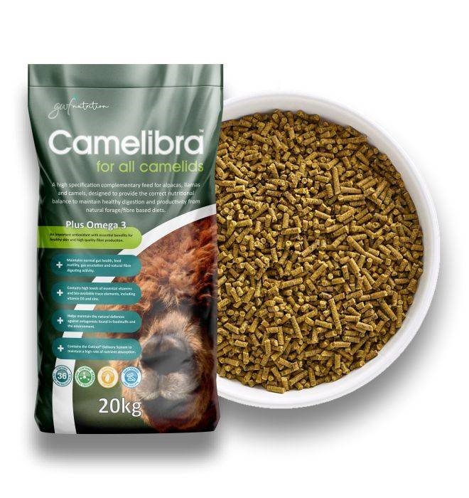 Gyvūnų rūšys: „Camelibra“ skirta alpakoms, lamoms ir kupranugariams kasdien, kaip papildas prie natūralios, daug skaidulų turinčios dietos.