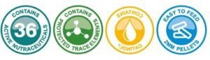 Padeda stabilizuoti pH C1 kameroje, skatina naudingų skaidulas virškinančių bakterijų vystymąsi ir gerina fosforo pasisavinimą iš įprasto pašaro.
