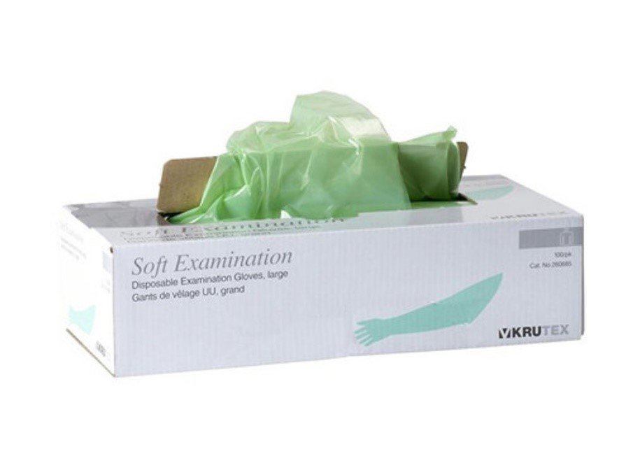 Vienkartinės ginekologinės – rektinės pirštinės.